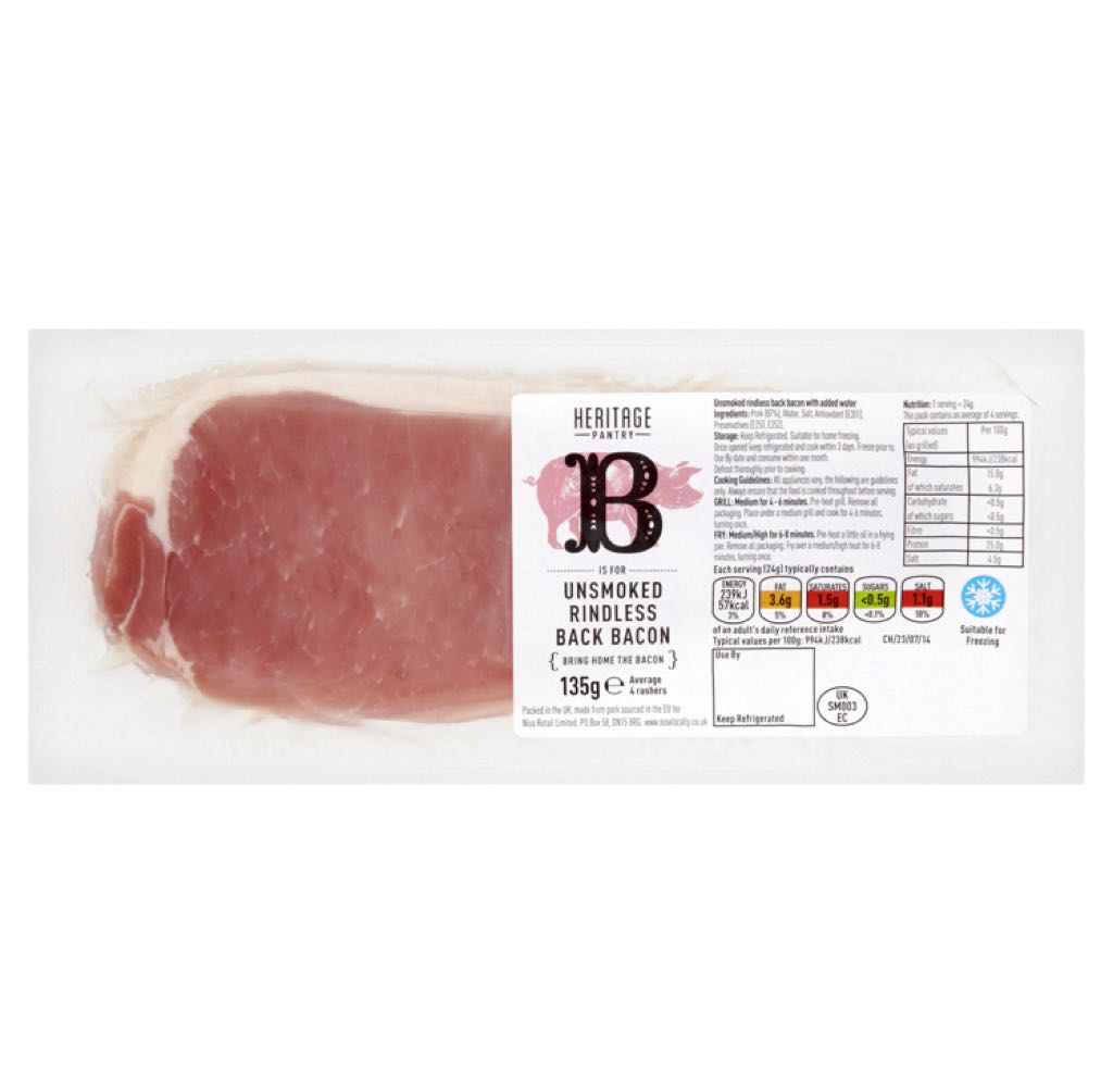 heritage unsmoked back bacon 135g