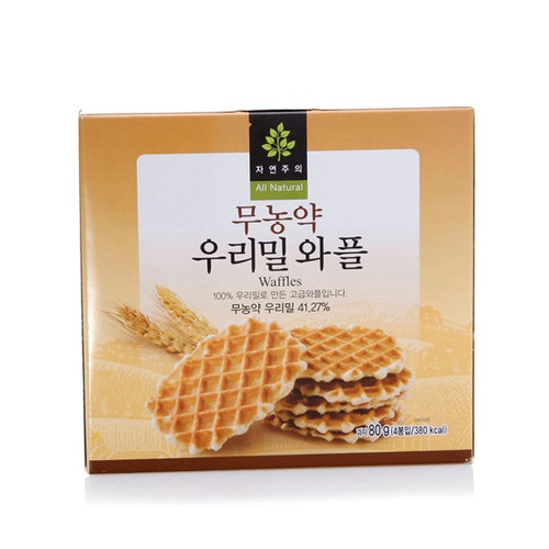 친환경 자연주의 자연 주의 무농약 우리 밀 와플 과자 80g (4봉입)