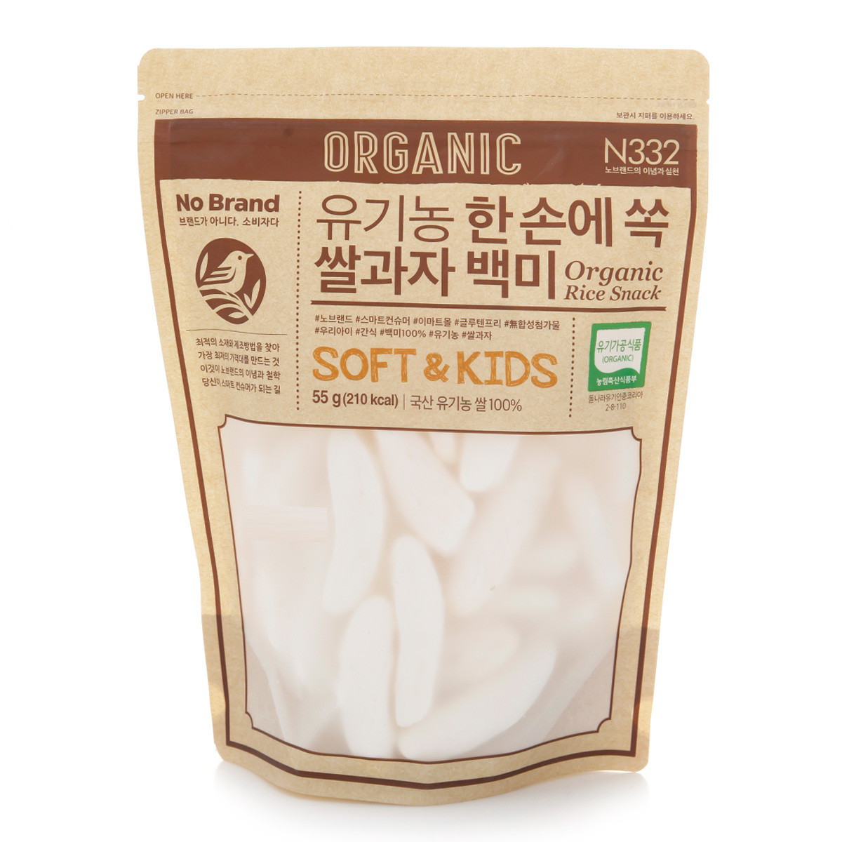 [노브랜드] 유기농 한손 쏙 쌀과자 백미 55g