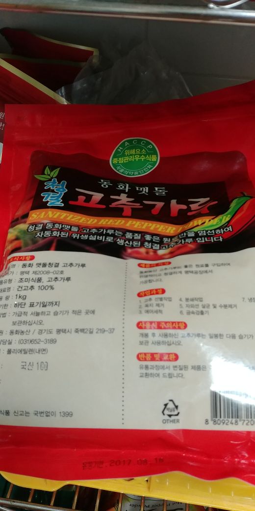 동화농산 청결고추가루(국산100%)1KG - VINYL